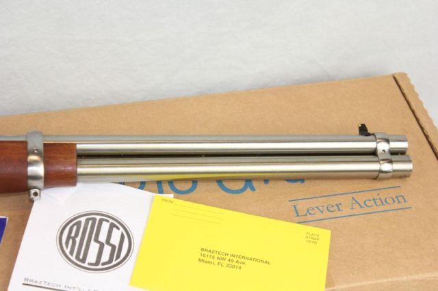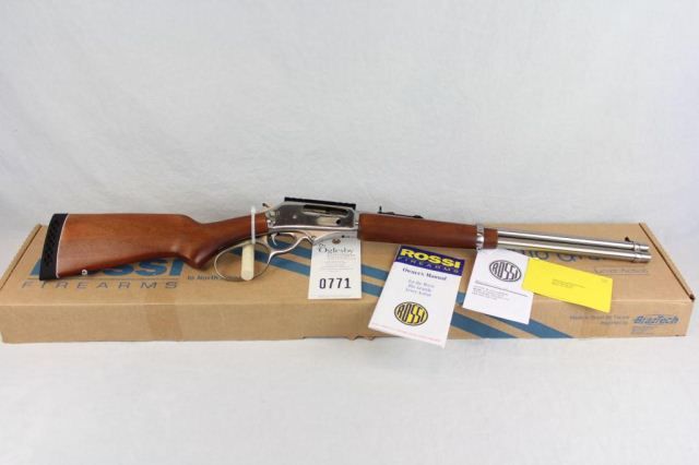 NEW IN BOX! Stainless Stee!! Directly from the distributor, this gun is BRAND NEW! 20" Barrel, Big Loop Lever, Iron Sights and Piccatinny Scope Base. All in Box! NEW & EXCELLENT! (This firearm is Rossi/Taurus' version of Marlin's Guide Gun.)