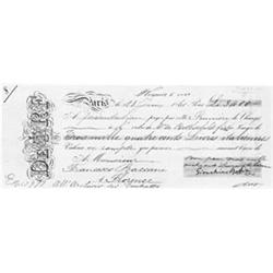 (1792 - 1868) Italian composer and leading representative of the bel canto school of opera, among his thirty-nine operas are The Barber of Seville, Otello, and William Tell. Handsome D.S. "Gioacchino Rossini" 1p. oblong, 10 1/4" x 4", Paris, June 18, 1861, a partly printed check ordering payment of 3,400 Italian livres to the Rothschild brothers, boldly signed by Rossini in the lower right corner. Light toning at right, boldly signed and very good.