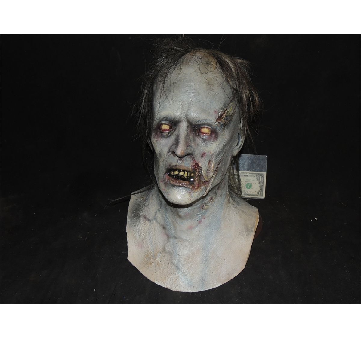 This is a OOAK full head latex rotten Zombie mask made as a prototype. It was never released so this is the sole example.
