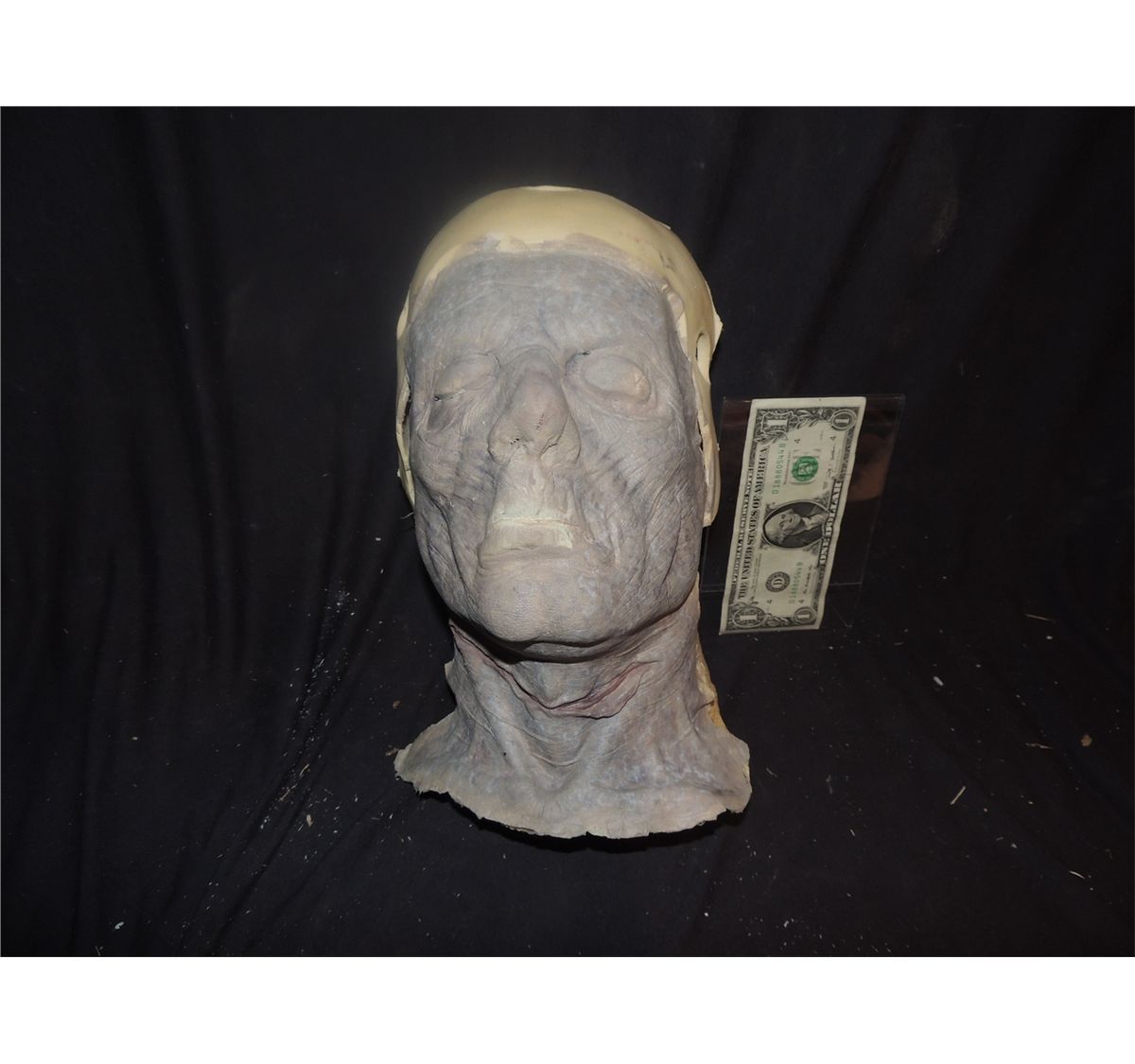 Unused, but supple and ready to be used Rotten Zombie or Mummy with a slit throat make up appliance in rigid foam life cast.