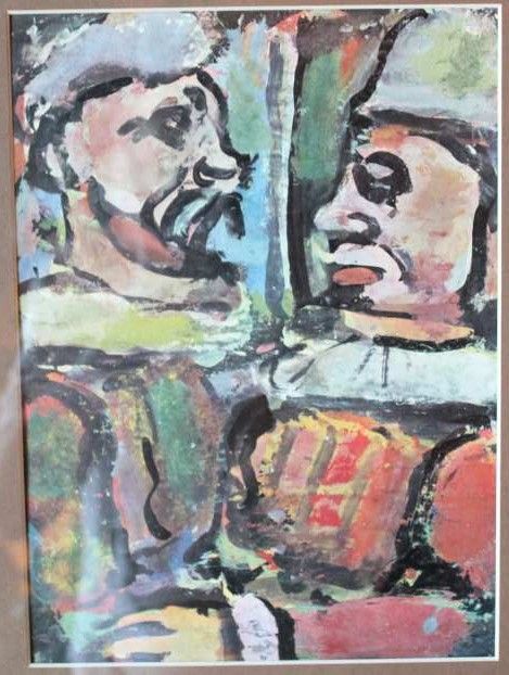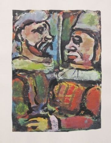 ROUAULT "LES DEUX" LITHOGRAPH FOR GEORGES ROUAULT'S "DIVERTISSEMENT" PORTFOLIO, CREATED BY THE ARTIST ESPECIALLY FOR THIS PROJECT. PUBLISHED IN PARIS IN 1943 BY TERIADE AND PRINTED IN AN EDITION OF 1200 ON ARCHES PAPER. THE IMAGE SIZE IS (APPROXIMATELY) 11 X 8 INCHES; THE TOTAL SHEET MEASURES 16 X 12 1/2 INCHES- PROFESSIONALLY FRAMED & MATTED - FRAMED APPX. 24.5" X 22.5"-