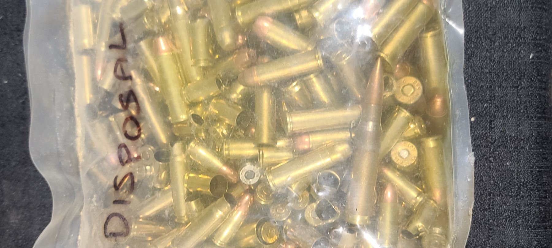 ROUGHLY 22LBS OF FACTORY MISSLOADS A MIX OF RFLE AND PISTOL AMMUNITION MARKED DISPOSAL. BRASS/BULLETS/PRIMERS/POWDERS NOT FOR FIRING IN THIS CONDITION