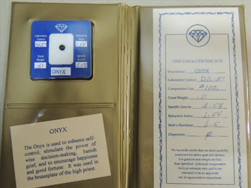 ROUND CUT ONYX STONE .51 CARAT WEIGHT & GEM DATA CERTIFICATE. AS SHOWN. VIEW PICTURE FOR DETAIL.