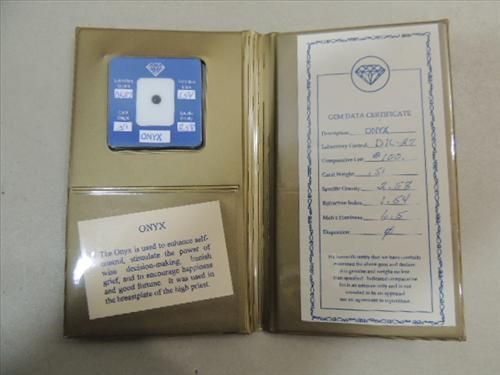 ROUND CUT ONYX STONE .51 CARAT WEIGHT & GEM DATA CERTIFICATE.  AS SHOWN.  VIEW PICTURE FOR DETAIL.