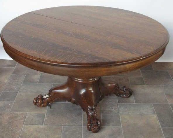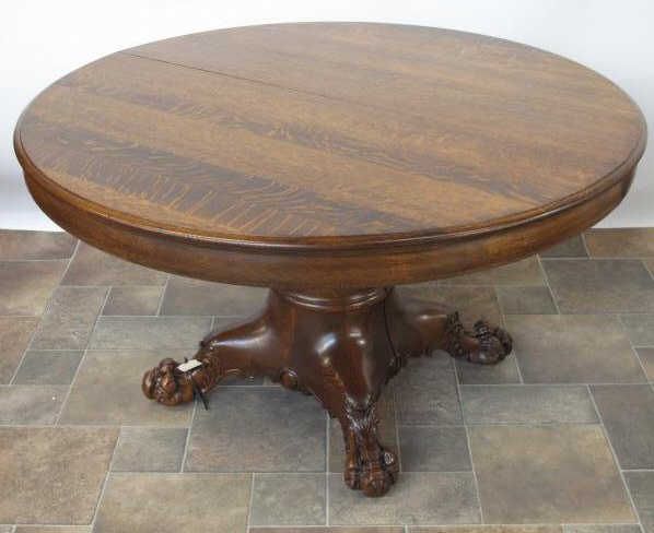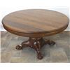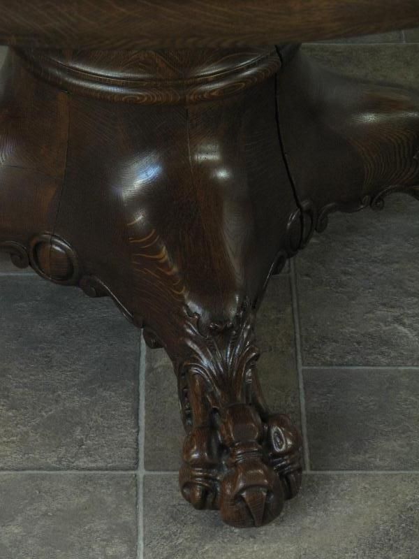 -solid oak table on a pedestal base with ball and claw feet. Four leaves, one 24 in. & three 11 in.