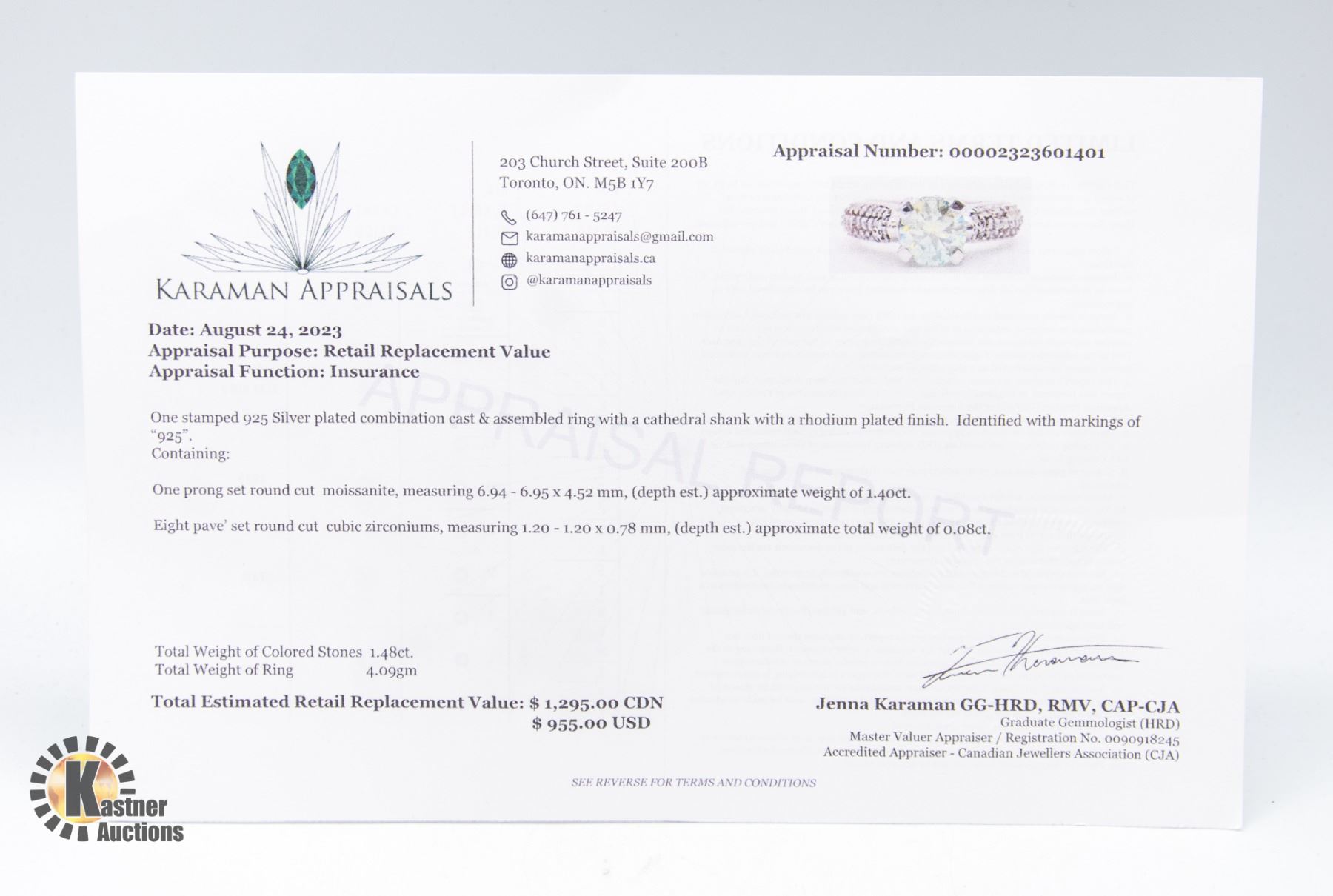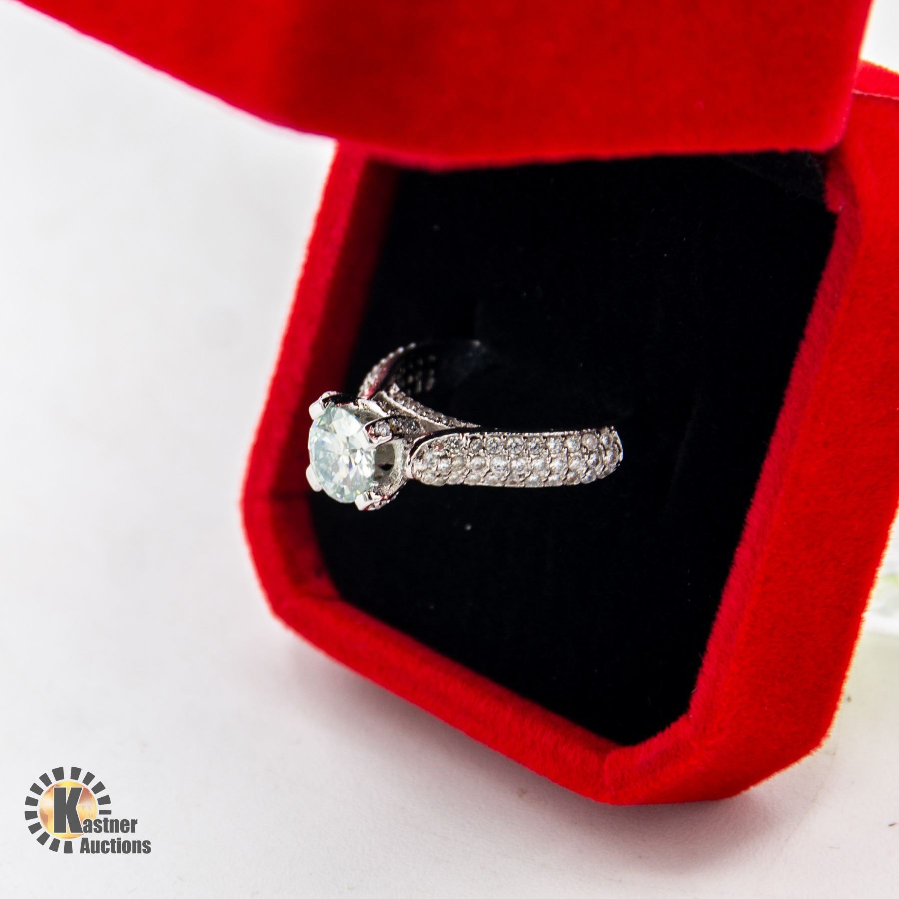 1.40 CARAT IN THE CENTER WITH APPROXIMATELY 8 CUBIC ZIRCONIUMS WEIGHING A TOTAL 0.08 CTS. RING SIZE 7.5 APPRAISED VALUE $1,295.00 **ALL ITEMS MUST BE REMOVED BY 5PM SATURDAY, DECEMBER 2ND 2023. ALL REMAINING ITEMS WILL BE SUBJECT TO A $6.00 PER DAY STORAGE CHARGE. ANY ITEMS REMAINING AFTER MONDAY, DECEMBER 18TH, 2023 WILL BE CONSIDERED FORFEITED. NO REFUNDS WILL BE ISSUED FOR FORFEITED ITEMS. TO SCHEDULE A PICK UP APPOINTMENT CLICK HERE