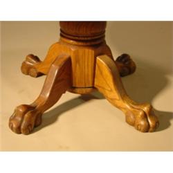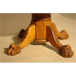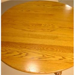 Round oak dining table with claw feet. Has three custom made leaves. 30" H, 48" Dia. (no leaves), 82" L (w/all leaves)