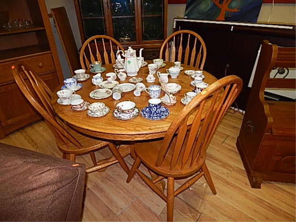 ROUND OAK TABLE WITH LEAF AND 4 CHAIRS