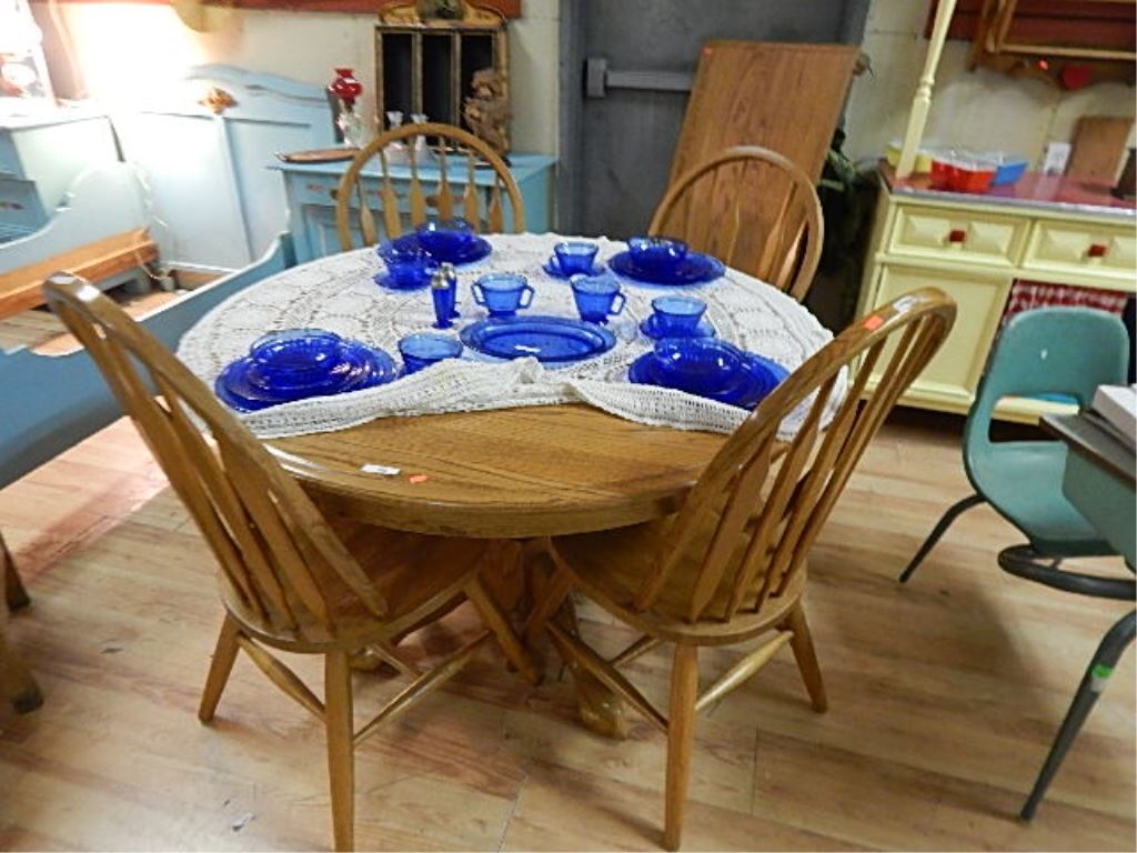 ROUND OAK TABLE WITH LEAF AND 4 CHAIRS