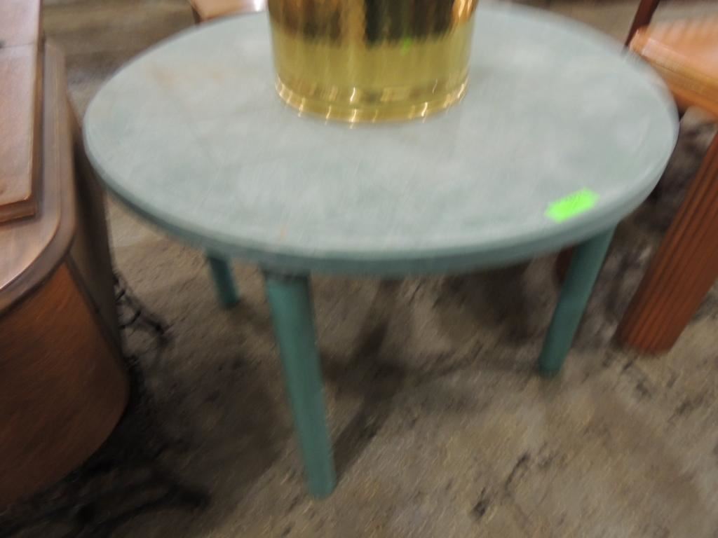 FAUX TILE LOOK, ROUND PLASTIC TABLE OUTDOOR INDOOR TABLE GREEN AS SHOWN SEE PHOTO FOR MORE DETAILS.