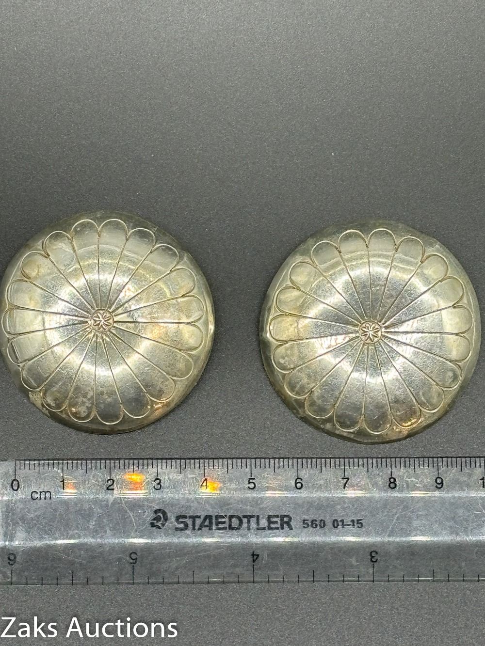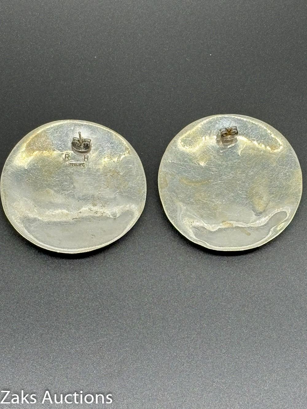 LARGE ROUND STERLING SILVER EARRINGS , SIGNED R H