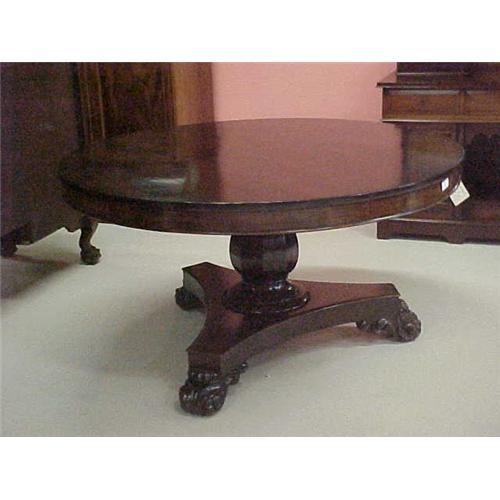 <table width="100%" border="0" cellspacing="0" cellpadding="4"><tr><td><em> </em></td></tr><tr> <td width="100%"> This magnificent Victorian Tilt Top Dining Table has a carved center pedistal and deeply carved paw feet. It can seat up to eight people and, with the top tilted, can sit in the corner of the room when not in use. </td></tr><tr> <td> </td></tr><tr> <td>Reference #: F_69</td></tr><tr><td>Condition:Excellent</td></tr><tr><td>Year:19th Century</td></tr><tr><td>Country:England</td></tr><tr><td>Height:28.5</td></tr><tr><td>Depth:53</td></tr><tr><td>Width:53</td></tr><tr><td>Title: ROUND VICTORIAN MAHOGANY TABLE</td></tr><tr><td>Style:Victorian</td></tr><tr><td>Location:Florida & New York, USA</td></tr></table>