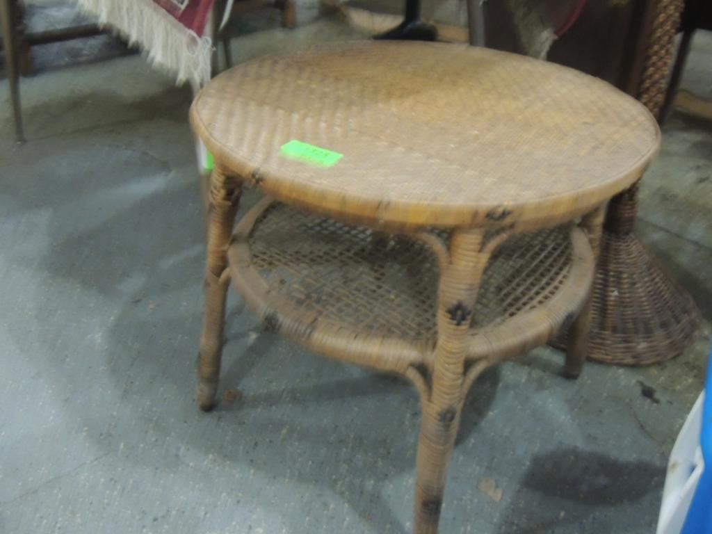 ROUND WICKER COFFEE TABLE LOW TABLE, DECORATIVE PATIO TABLE, INDOOR / OUTDOOR TABLE AS SHOWN SEE PHOTO FOR MORE DETAILS.