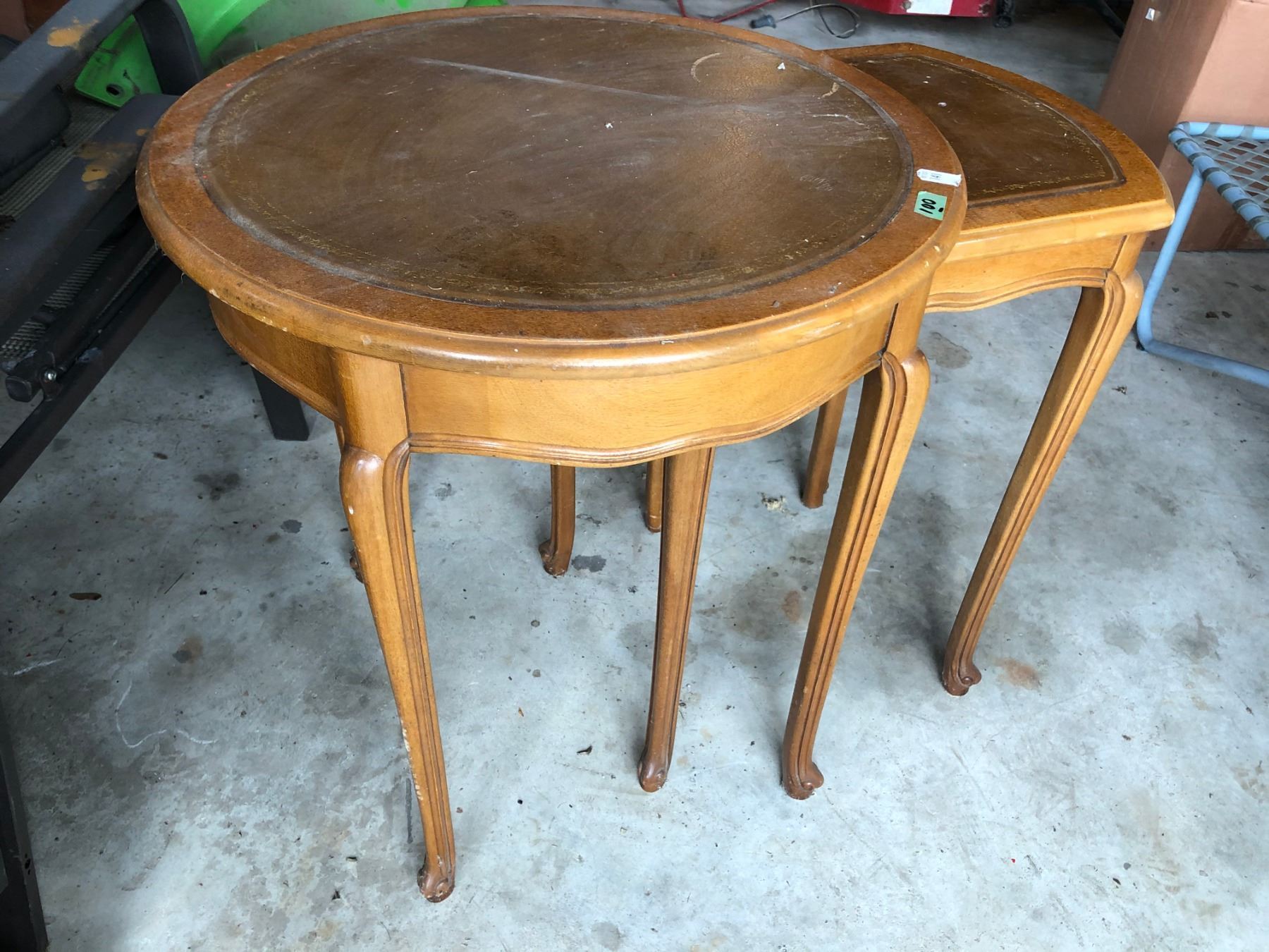 ROUND WOOD SIDE TABLE WITH PULLOUT EXTENSION