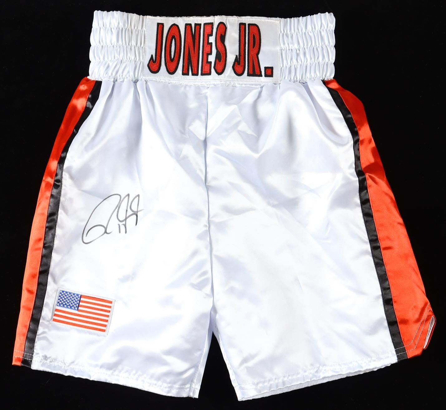ROY JONES JR SIGNED BOXING TRUNKS JSA COA)