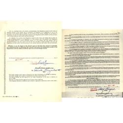 <b>1358. ROY ROGERS AND DALE EVANS </b> A pair of contracts with the William Morris Agency. The first, a D.S. "<i>Roy Rogers</i>" 4pp. 4to., Beverly Hills, June 2, 1967, is a one year exclusive management contract with the agency under specific rules of Actors Equity. <b>DALE EVANS</b> signed a similar contract, a D.S. (non-equity), 7pp. 4to., Beverly Hills, June 15, 1970. File holes at top, pages stapled, usual folds, otherwise very good condition.<b> $75-100</b>