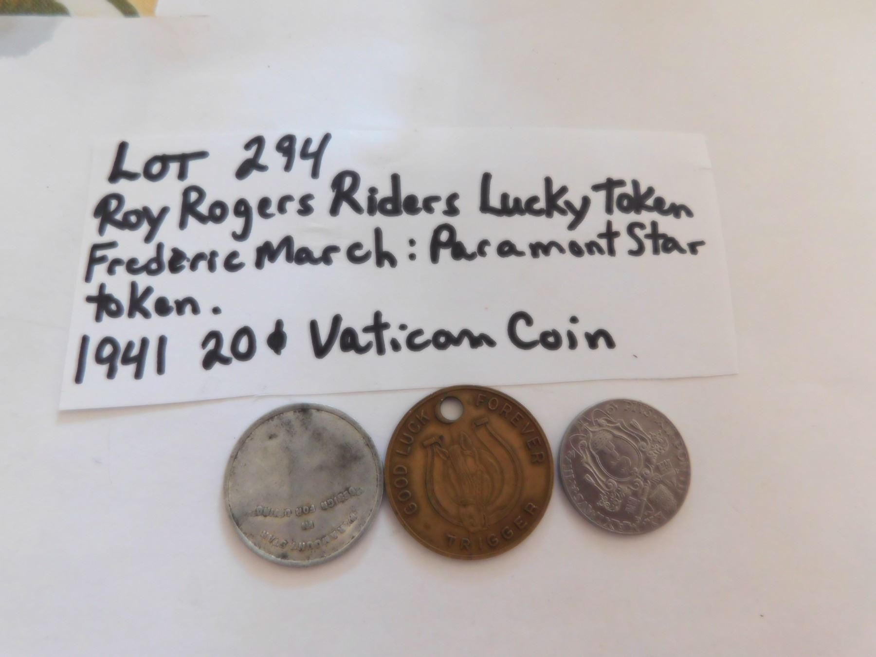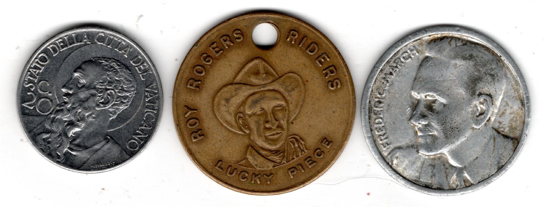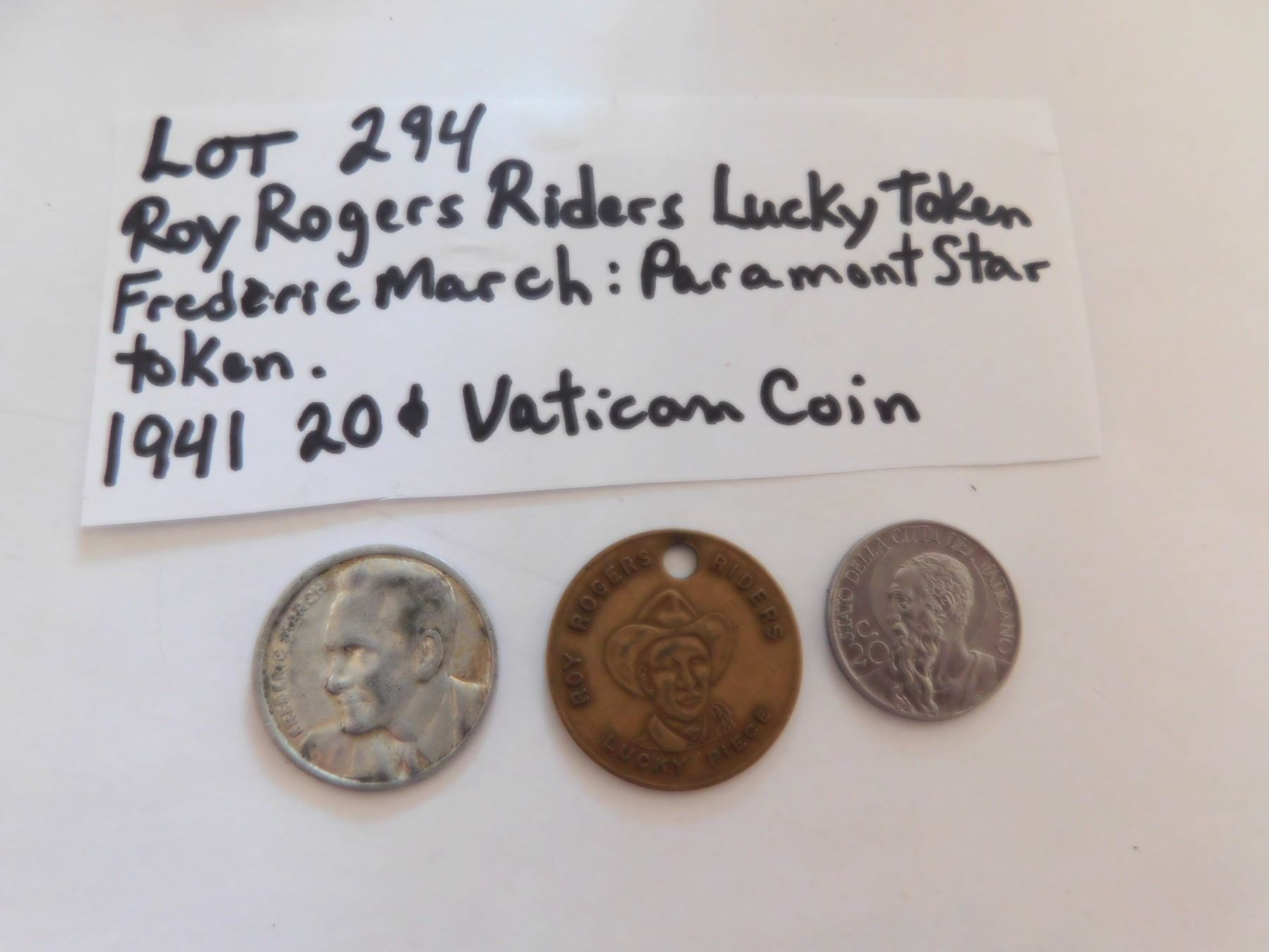 ROY ROGERS, FREDERIC MARCH TOKEN & 1941 VATICAN COIN