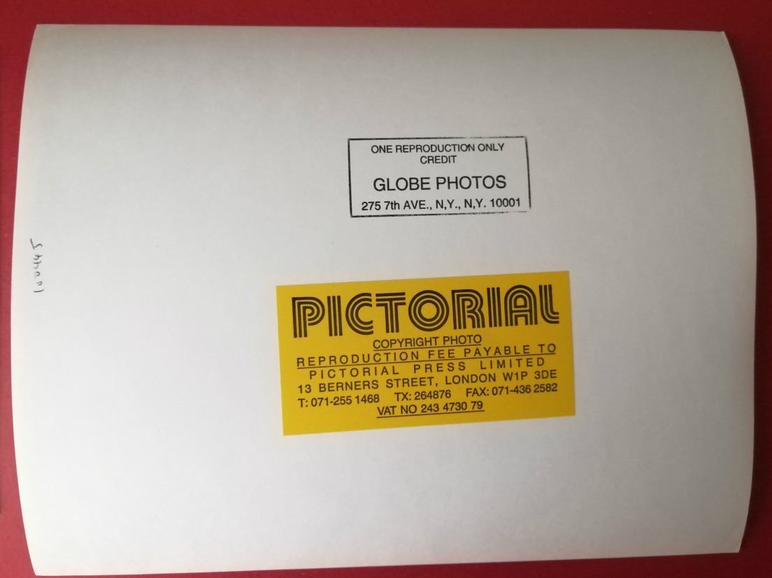 10x8 inch silver gelatin photo, with press stamps on verso.
