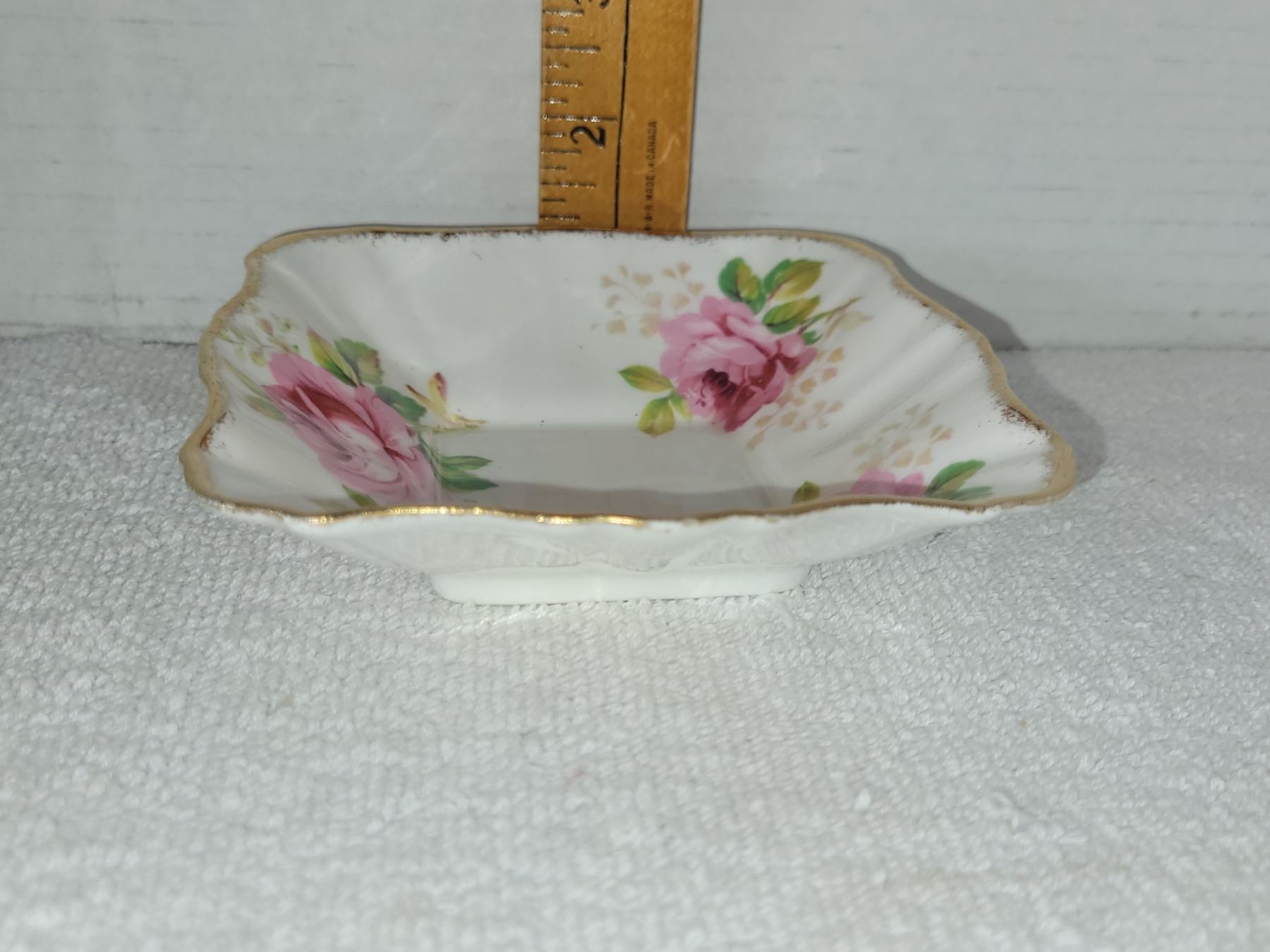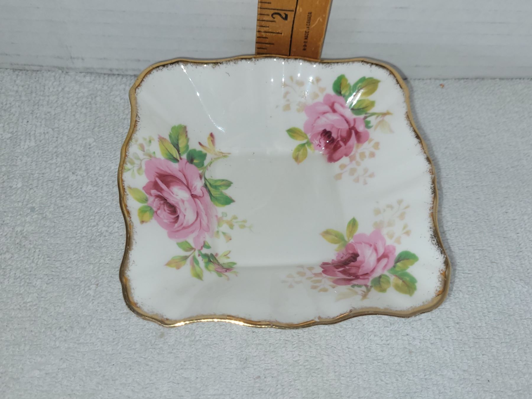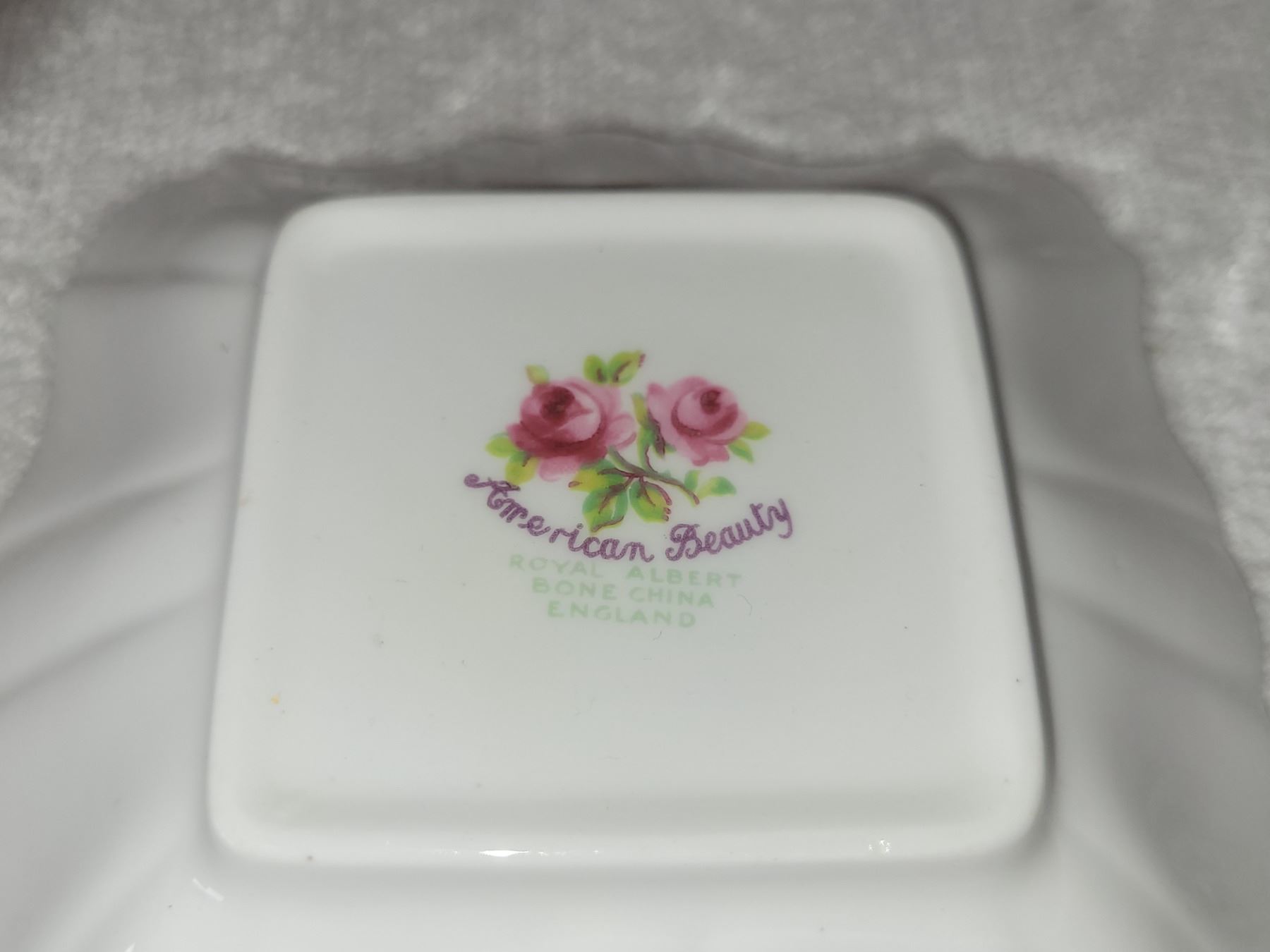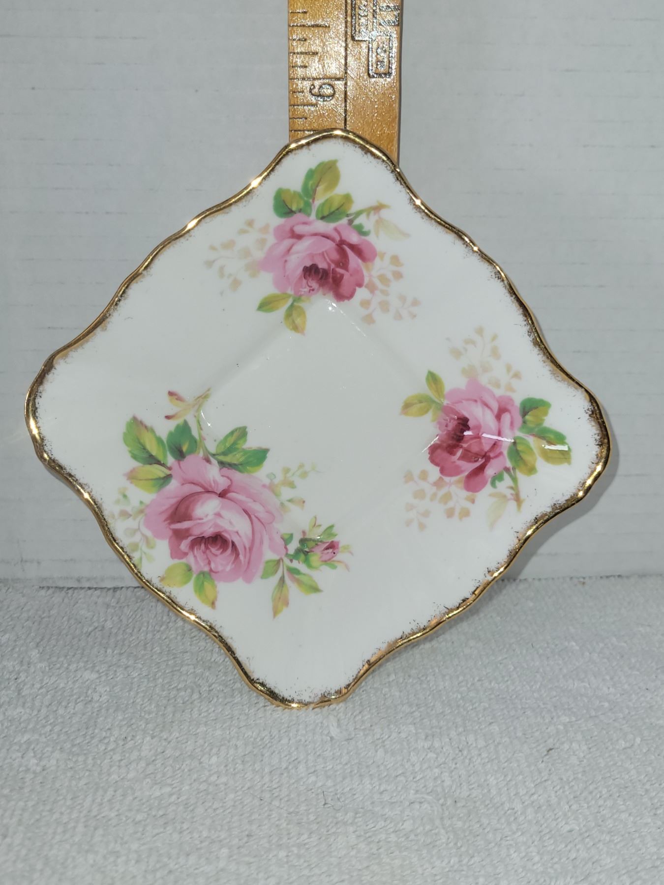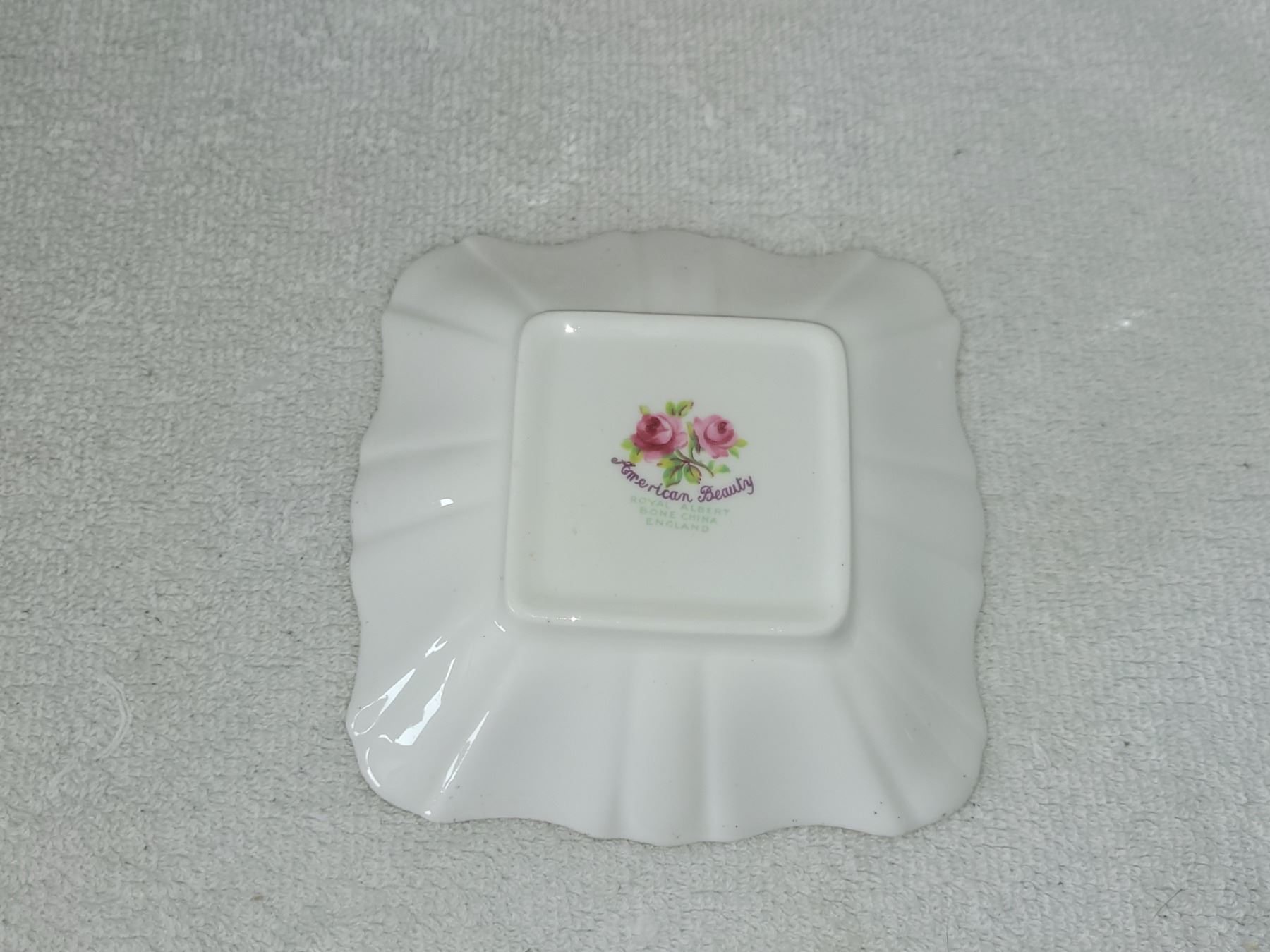 ROYAL ALBERT AMERICAN BEAUTY SQUARE CANDY DISH. MEASURES 4.75" WIDE 1.25" TALL