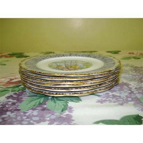 LOVELY BONE CHINA BREAD AND BUTTER PLATES, SET OF SIX, EACH MEASURING ABOUT 6 1/2 inch in diam., MADE IN ENGLAND *SILVER BIRCH* PATTERN, Excellent never used, mint condition, free from chips or cracks, US Buyer to pay 9.00 for shipping plus insurance.THANKS.