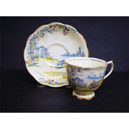 BEAUTIFUL PEDESTAL TEA SET, MADE BY ROYAL ALBERT BONE CHINA ENGLAND, HAND PAINTED ACCENTS, DEPICTING BEAUTIFUL GARDEN - Excellent condition, US Buyer please remit 7.00 for shipping plus insurance.THANKS.