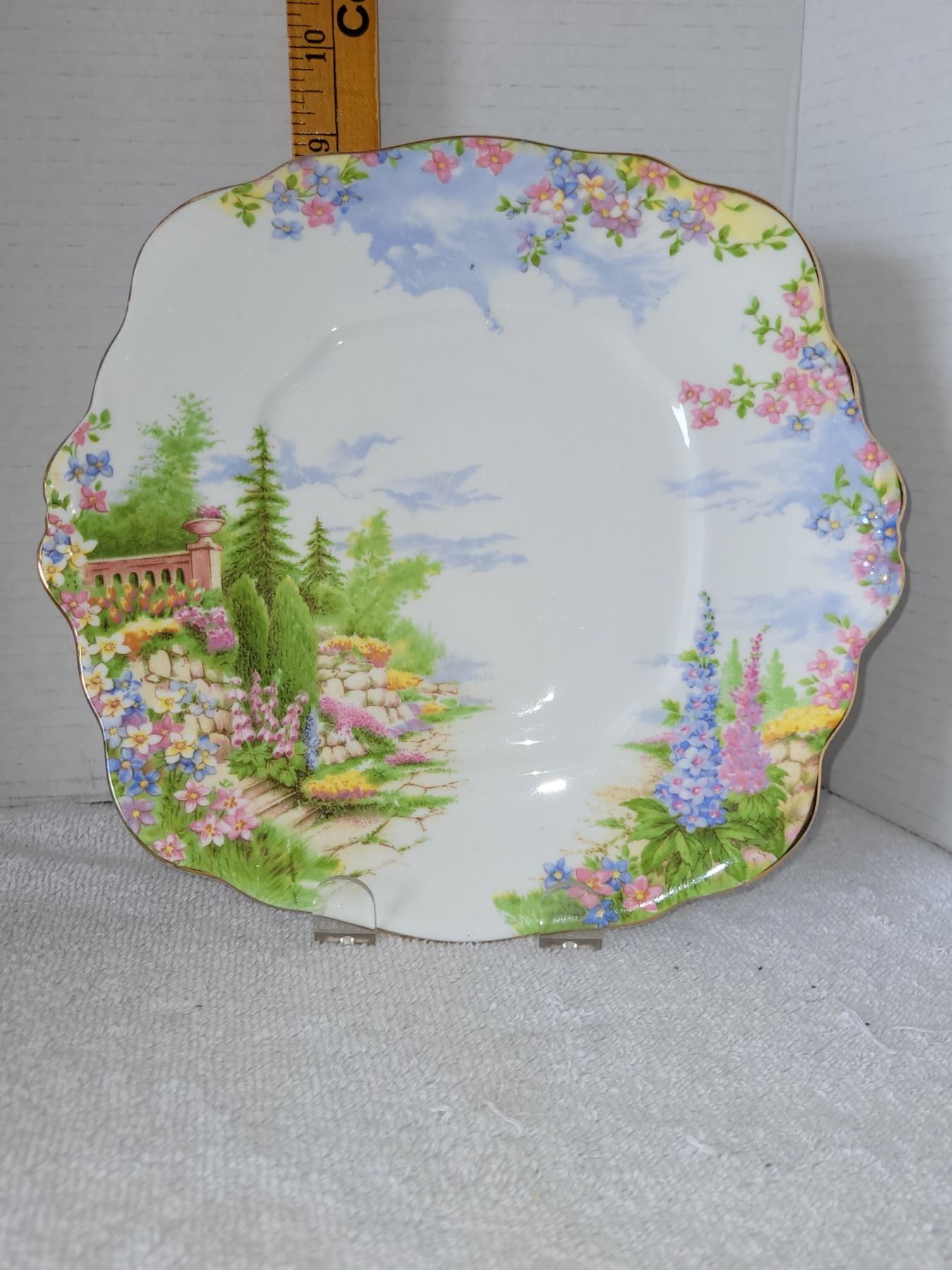 ROYAL ALBERT KENTISH ROCKERY CAKE PLATE. MEASURES 9.5"