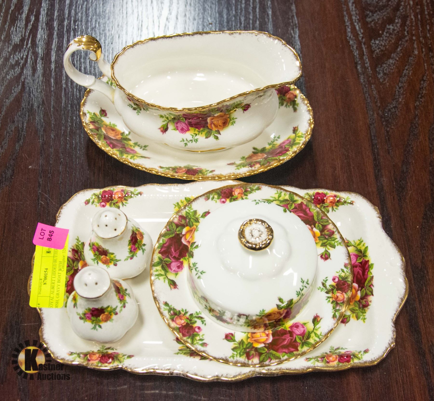 ROYAL ALBERT LIDDED BUTTER DISH, GRAVY BOAT WITH