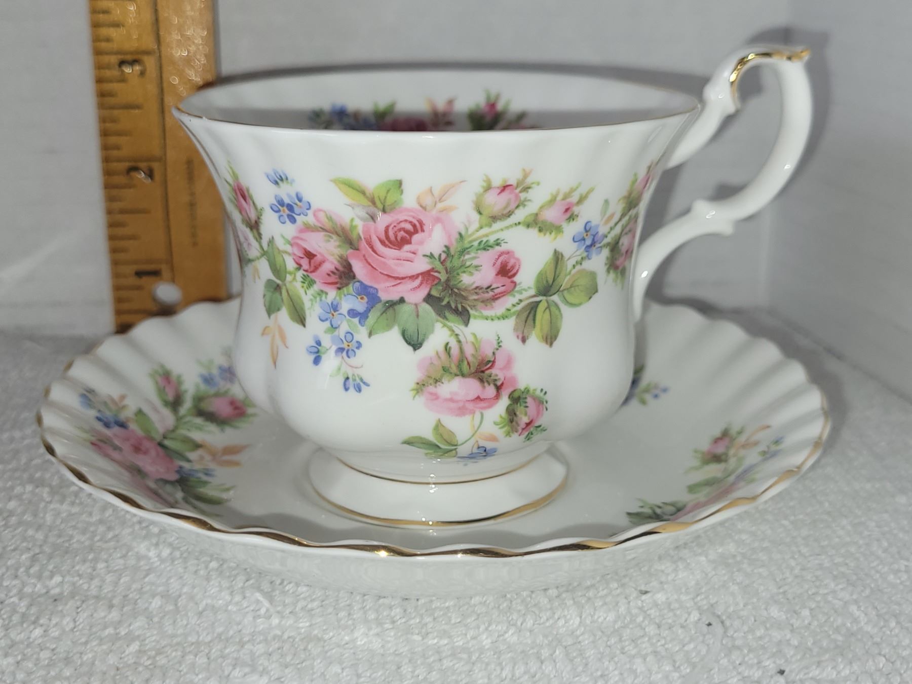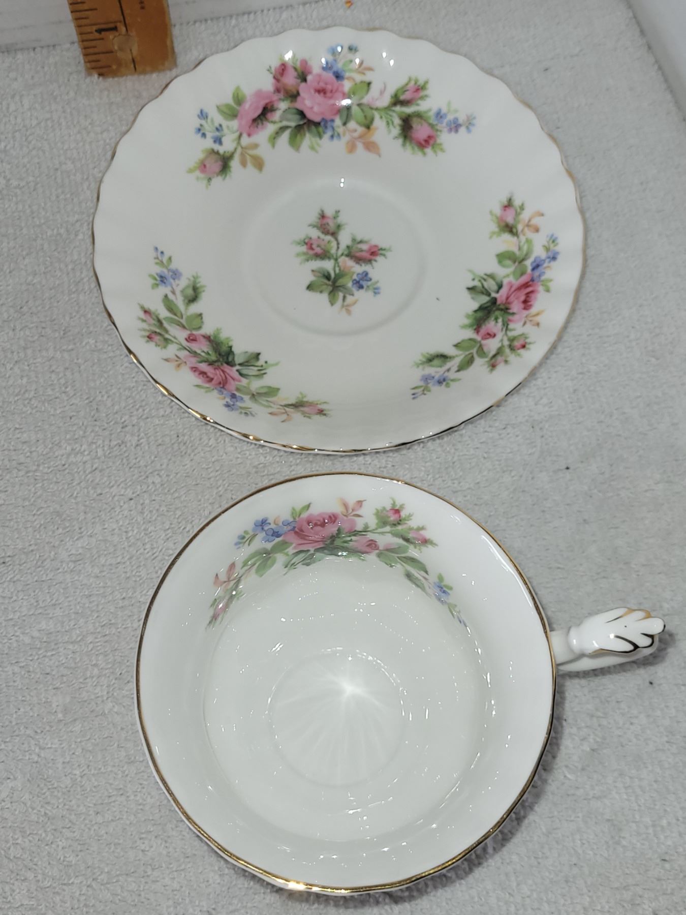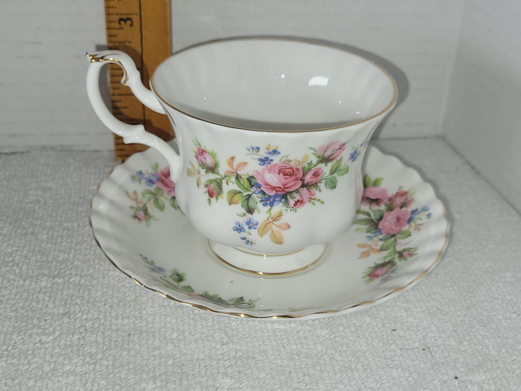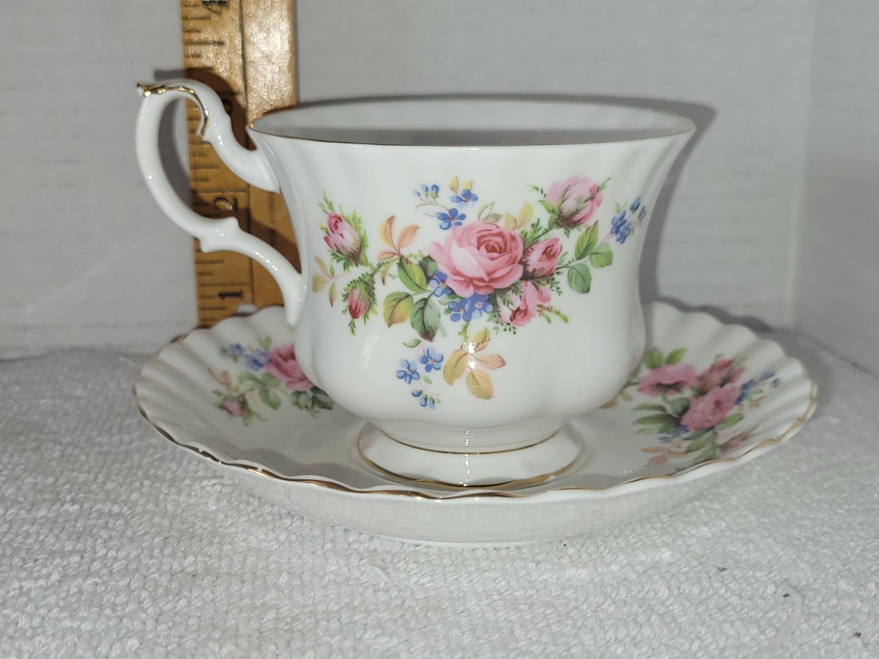 ROYAL ALBERT MOSS ROSE TEACUP AND SAUCER SET