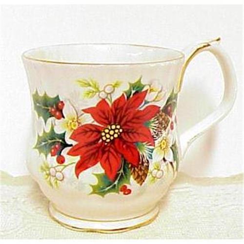 Made from finest bone china, high quality Royal Albert - England - Coffee Mug - POINSETTIA,- Measures about 3 1/4" high - Excellent condition - Free of chips or cracks - Gold decorations are all present - Buyer please pay 7.80 for shipping - Thanks!