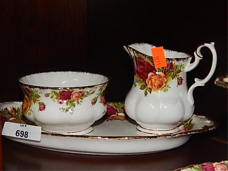 ROYAL ALBERT - OLD COUNTRY ROSES - CREAM & SUGAR WITH BOTTOM PLATE
