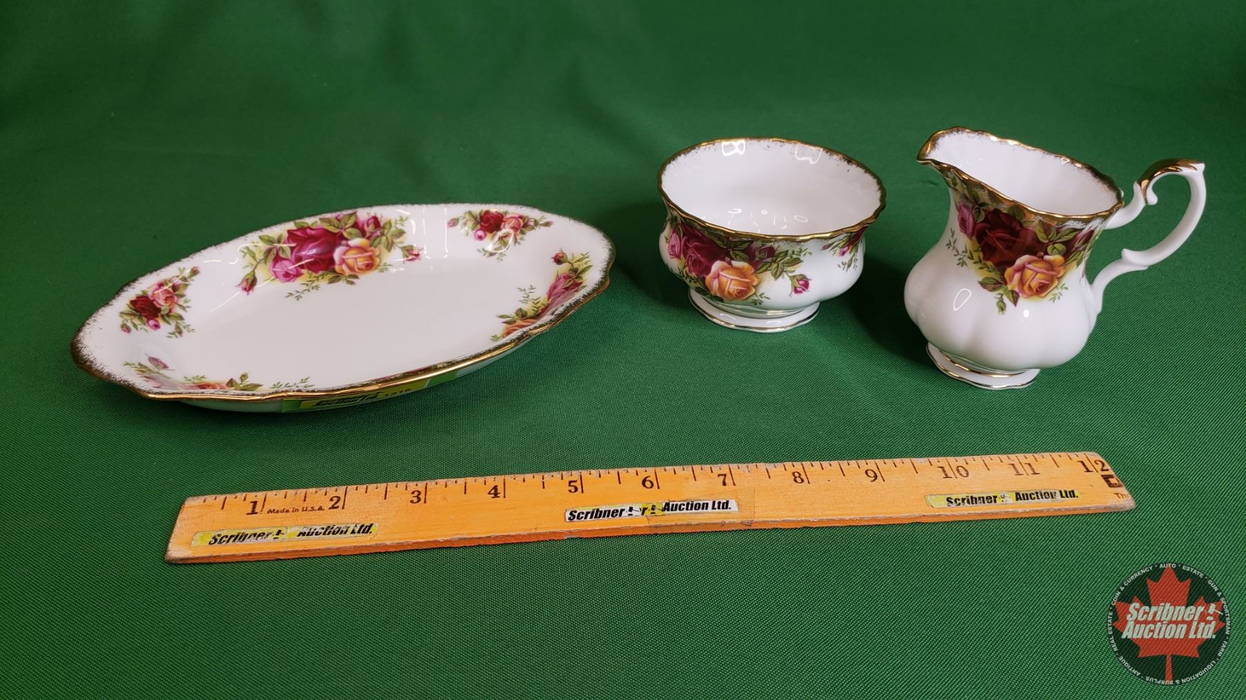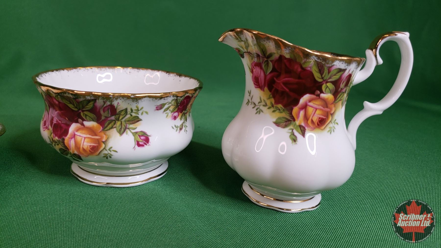 ROYAL ALBERT "Old Country Roses" China ~ Cream & Sugar & Tray (4"H x 8-1/2"W x 5-1/2"D) (SEE PICS!)