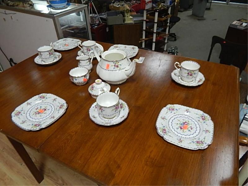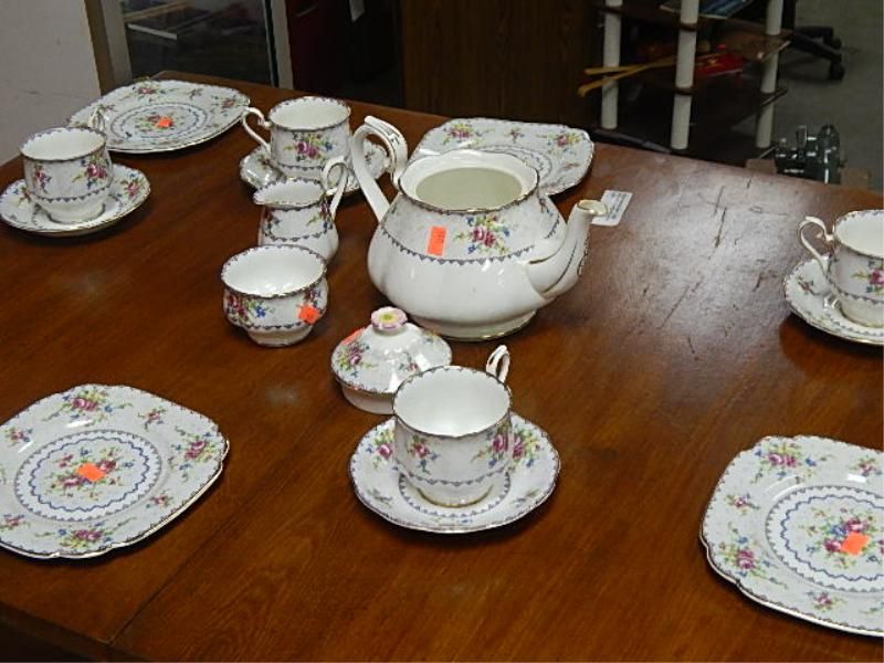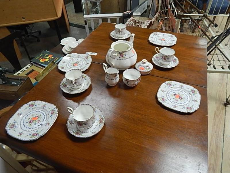 ROYAL ALBERT TEA SET - 15 PC - PETTI POINT - LID TO TEAPOT HAS BEEN REPAIRED