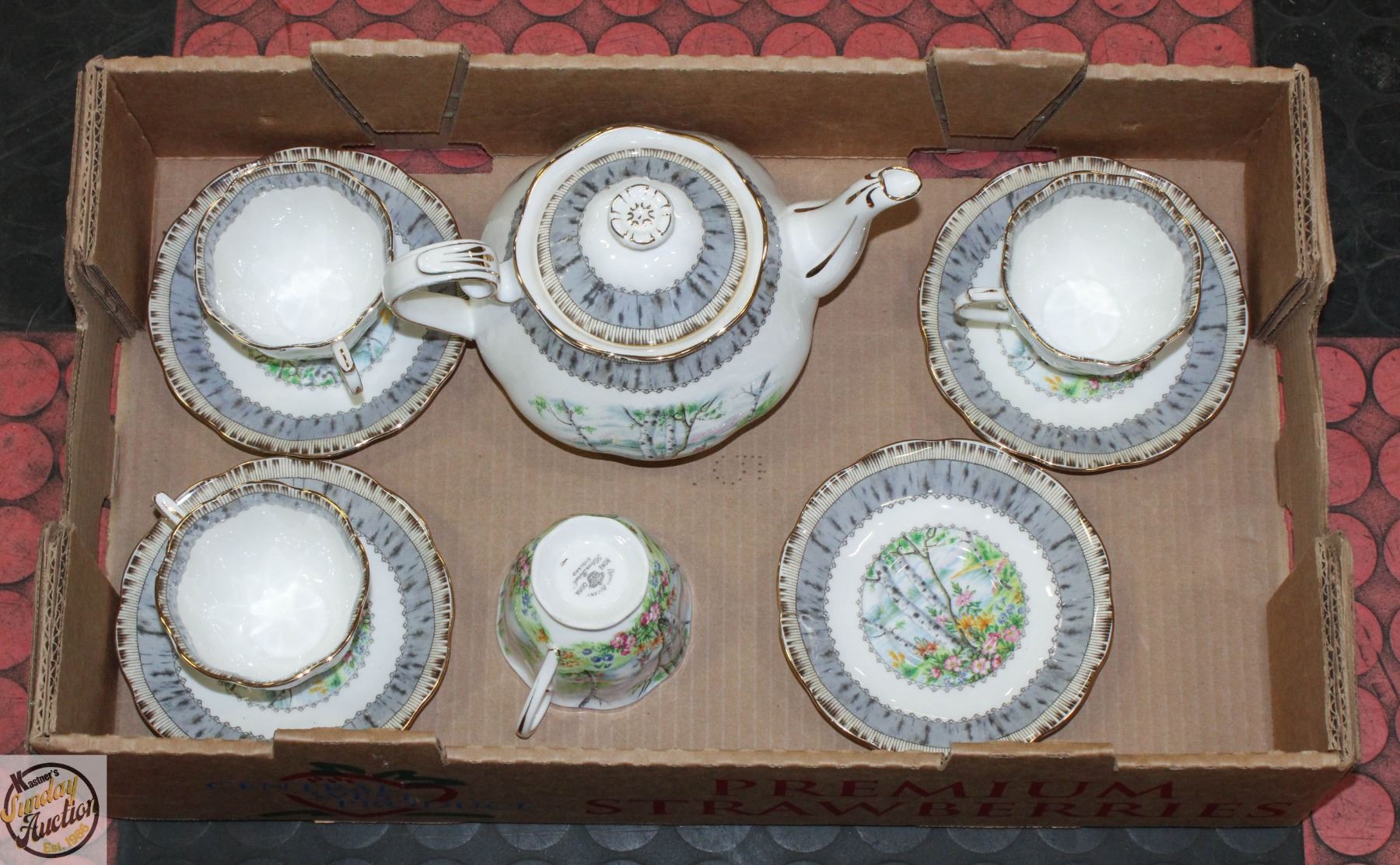 TEAPOT + 4 CUPS & SAUCERS **ALL ITEMS MUST BE REMOVED BY 5PM SATURDAY, JUNE 28th 2025. ALL REMAINING ITEMS WILL BE SUBJECT TO A $6.00 PER DAY STORAGE CHARGE. ANY ITEMS REMAINING AFTER MONDAY, JULY 14TH 2025 WILL BE CONSIDERED FORFEITED. NO REFUNDS WILL BE ISSUED FOR FORFEITED ITEMS. TO SCHEDULE A PICK UP APPOINTMENT CLICK HERE