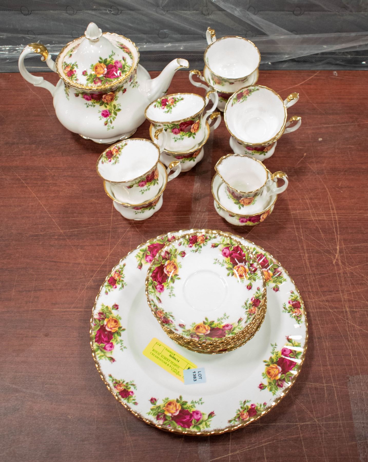 ROYAL ALBERT TEAPOT, CREAM/SUGAR & 8 CUPS &