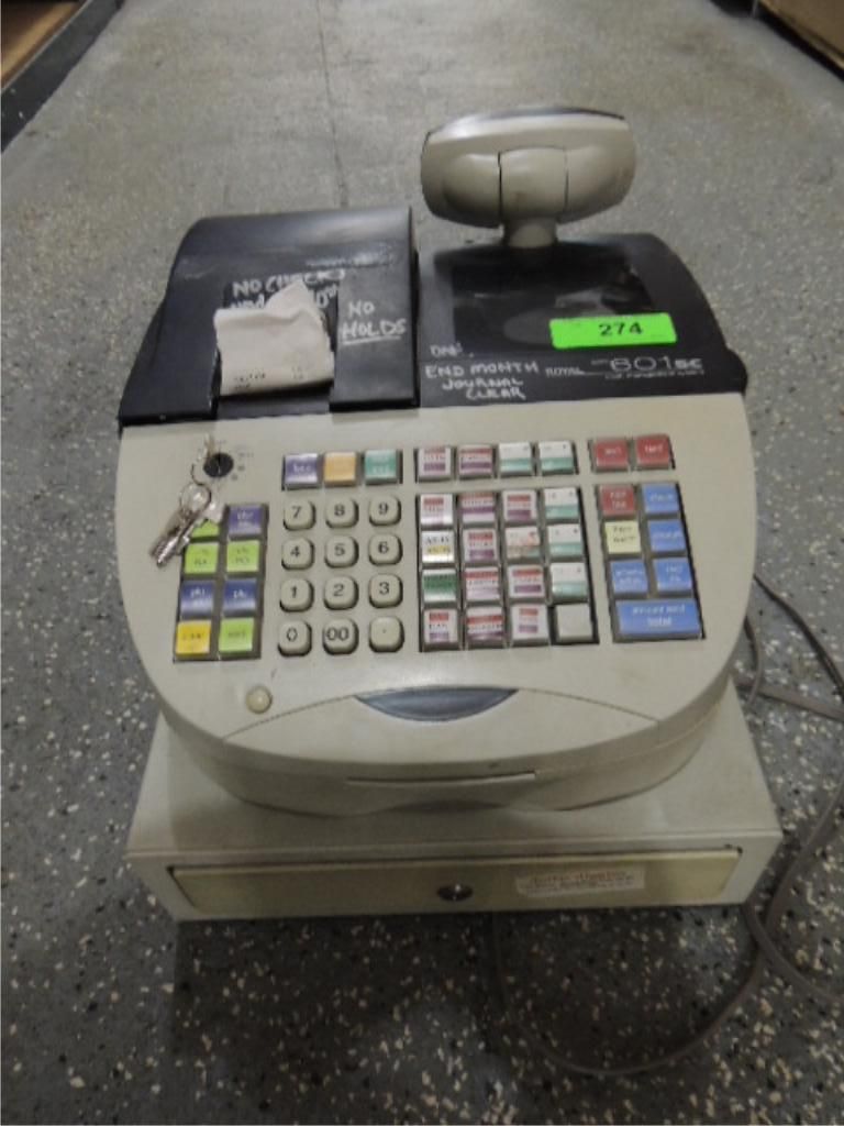 ROYAL ALPHA 601SC MULTI-FUNCTION CASH REGISTER & KEYS. AS SHOWN. VIEW PICTURE FOR DETAIL.