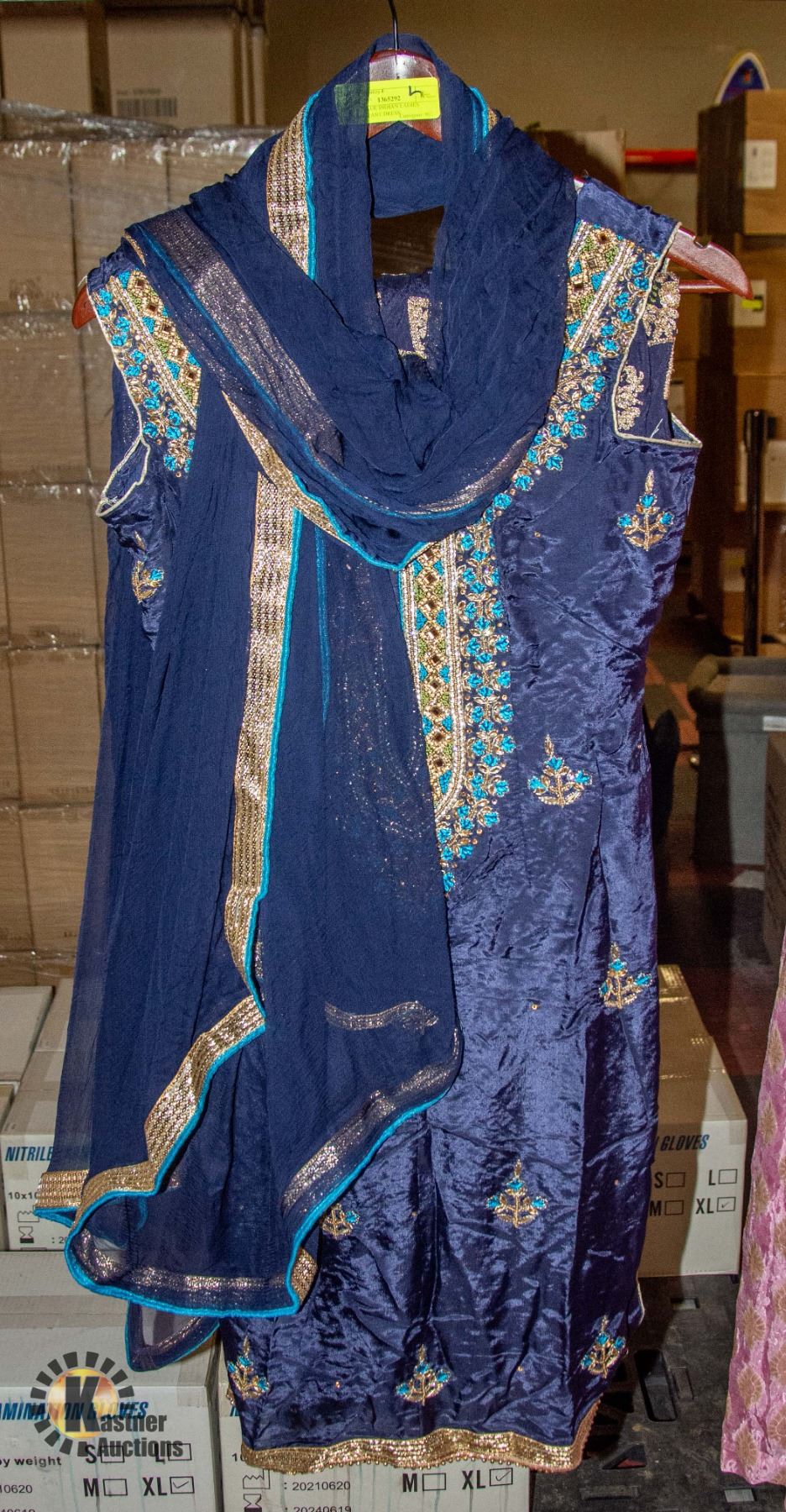 SET WITH MATCHING PANTS & SCARF, INTRICATE TURQUOISE BEAD WORK, GOLD AND SILVER TRIM, PARTY, WEDDING, RECEPTION DRESSWEAR - LADIES SIZE LARGE **ALL ITEMS MUST BE REMOVED BY 5PM SATURDAY, DECEMBER 7TH 2024. ALL REMAINING ITEMS WILL BE SUBJECT TO A $6.00 PER DAY STORAGE CHARGE. ANY ITEMS REMAINING AFTER MONDAY, DECEMBER 23RD 2024 WILL BE CONSIDERED FORFEITED. NO REFUNDS WILL BE ISSUED FOR FORFEITED ITEMS. TO SCHEDULE A PICK UP APPOINTMENT CLICK HERE