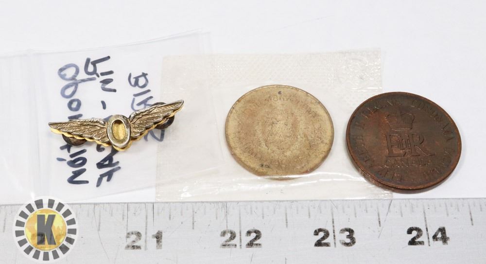 1967 CONFEDERATION TOKEN AND QUEEN ELIZABETH MEDALLION. PIN IS STAMPED BIRKS STERLING***ITEM(S) LOCATED IN LETHBRIDGE ALBERTA