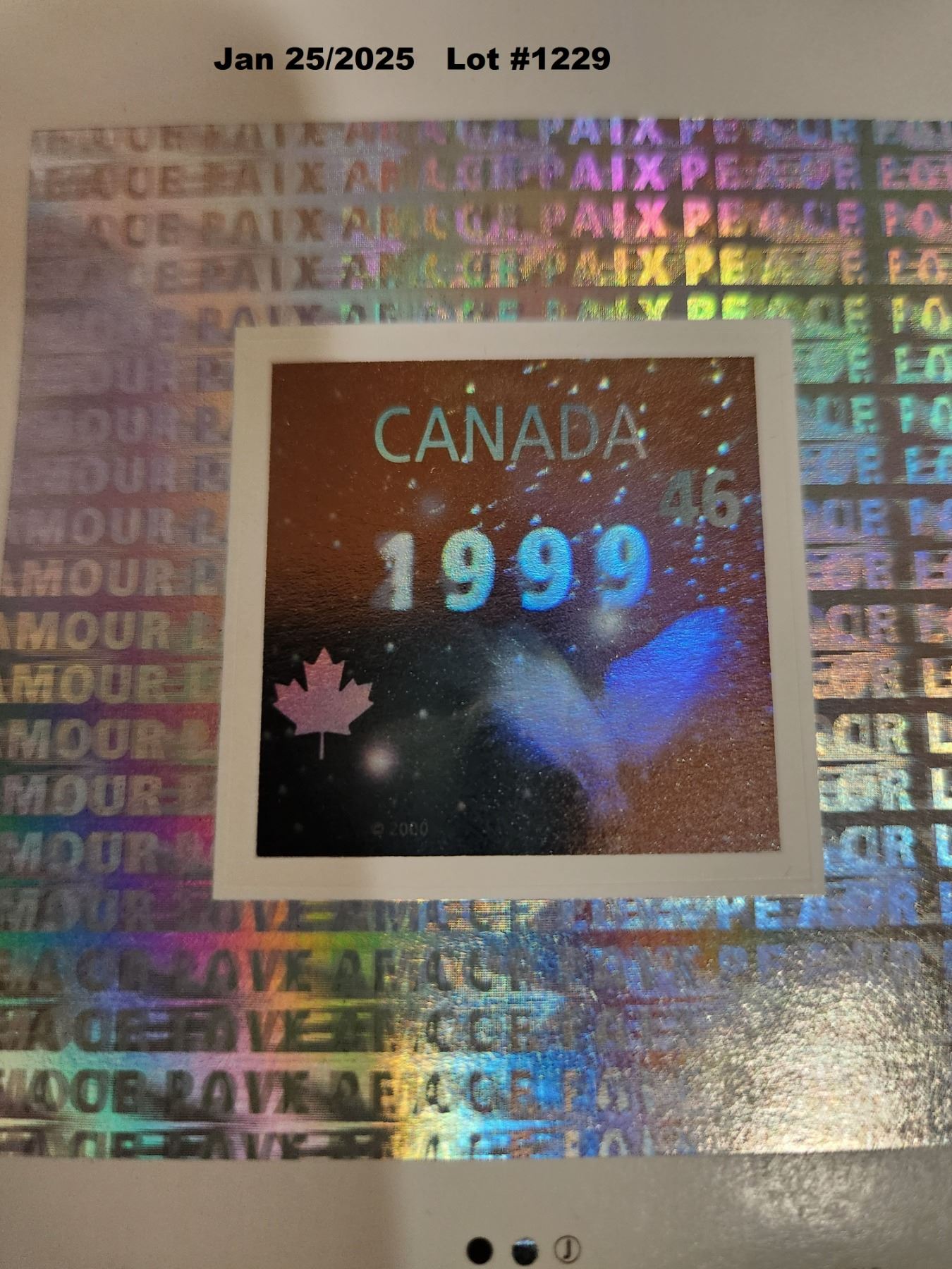 ROYAL CANADIAN MINT MILLENNIUM MEDALLION, (3) COMMENORATIVE STAMPS, HOLOGRAPHIC IMAGE. CANADA POST