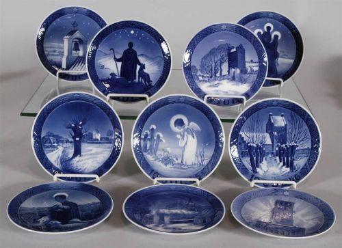 ROYAL COPENHAGEN CHRISTMAS PLATES (10), 1940-1949, CONDITION: 1943 plate has two circular scratches on back, others excellent. PACKING AND SHIPPING BY FAIRFIELD AUCTION WITHIN CONTINENTAL USA (excluding insurance) $40,