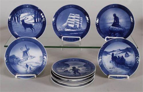 ROYAL COPENHAGEN CHRISTMAS PLATES (10), 1960-1969, CONDITION: excellent, no damage or repairs, 1964 plate is marked as a second, 1965 has minor glaze imperfection on back. PACKING AND SHIPPING BY FAIRFIELD AUCTION WITHIN CONTINENTAL USA (excluding insurance) $40,