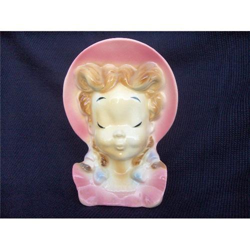 This is a Royal Copley head vase or wall pocket. She is in pretty shades of pink. She has light brown pigtails with blue bows. Condition is excellent, no damage of any kind. Slight crazing which shows its original. She would make a great addition to any collection. See photos. Have a look at my other items. Thank you for viewing.