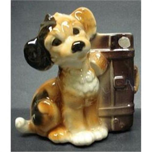 GORGEOUS ANTIQUE FIGURAL PLANTER - MADE by COPLEY (original sticker), DEPICTING DARLING PUPPY WITH SUITCASE AND THE NAME TAG "SKIP", ADORABLE FACE, BEAUTIFUL COLORS,no chips or cracks but for surface glaze crazing, which is common to older pieces like this,Measures 7" high and about 7 1/2" wide - US Buyer to pay 8.00 for shipping plus insurance.THANKS.