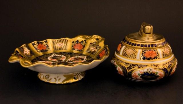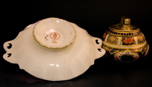 Here is a wonderful little set by Royal Crown Derby for the smoking household, or maybe for guests who do. Auction includes table lighter, 2 7/8" height. Ashtray, 1 1/2" height x 6 3/8" length. Approx. $300 combined retail value.