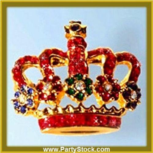 ROYAL CROWN PIN BROOCH 24K GOLD SWAROVSKI CRYSTAL