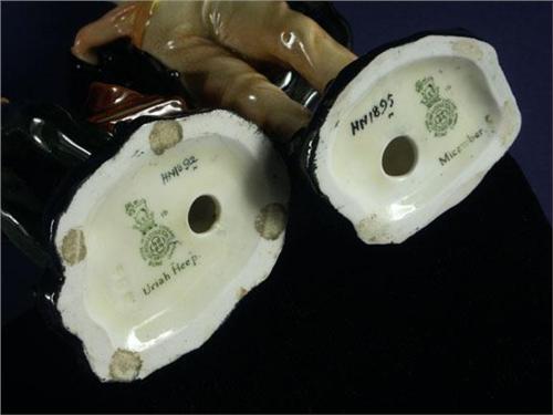 PORCELAIN: Royal Dalton: HN1892, '' Uriah Heep'' who was a character from Charles Dickens, ''David Copperfield'', 2nd, version, designed by L. Harradine, 1938 -1952, 7'' tall. The second is Royal Dalton, HN 1895, ''Micawber'', also a character from ''David Copperfield'', 2nd version, designed by L. Harradine, 1938 - 1952, 7'' tall. No damage was noted on either figurine.