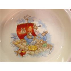 Royal Doulton Bunnykins warming plate. Marked on bottom "Bunnykins" with Royal Doulton crest. 8.5" Dia.