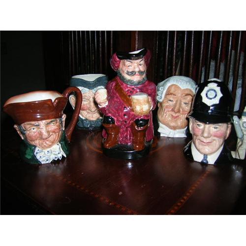 <table width="100%" border="0" cellspacing="0" cellpadding="4"><tr><td><em> S & D COLLECTIBLES OFFER THIS WONDERFUL (HTF) VINTAGE AND HIGHLY COLLECTILBE LOT OF 5 ROYAL DOULTON CHARACTER MUGS FOR AUCTION TODAY. </em></td></tr><tr> <td width="100%"> THIS WONDERFUL SET OF 5 ROYAL DOULTON ARE HIGHLY COLLECTILBE AND IN VERY GOOD CONDITION AND MAKE A PERFECT ADDTION TO ANY VINTAGE COLLECTION. CURRENT ESTIMATED VALUE BETWEEN $775.00 TO $975.00. COMPRICED OF THE FOLLOWING: