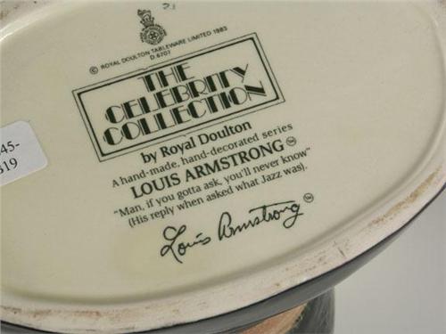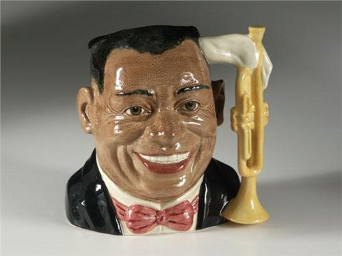 PORCELAIN: A Royal Doulton ''The Celebrity Collection'' character jug, ''Louis Armstrong'', D6707, depicting the musician with a trumpet form handle, large size, 8 1/4'' x 7'', no damage noted.