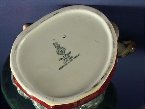 PORCELAIN: A Royal Doulton porcelain character jug, ''Pied Piper'', a representation of Robert Browning's medieval legend, the Pied Piper of Hamlin, D6403, 1953, hallmarked, large size, 7'' x 8'', no damage noted.
