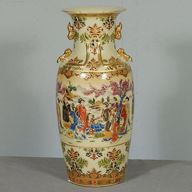 ROYAL GEISHA VASE - GOLD HANDLES RAISED LINES - VERY GOOD CONDITION - APPROX. 24H X 9DIA.